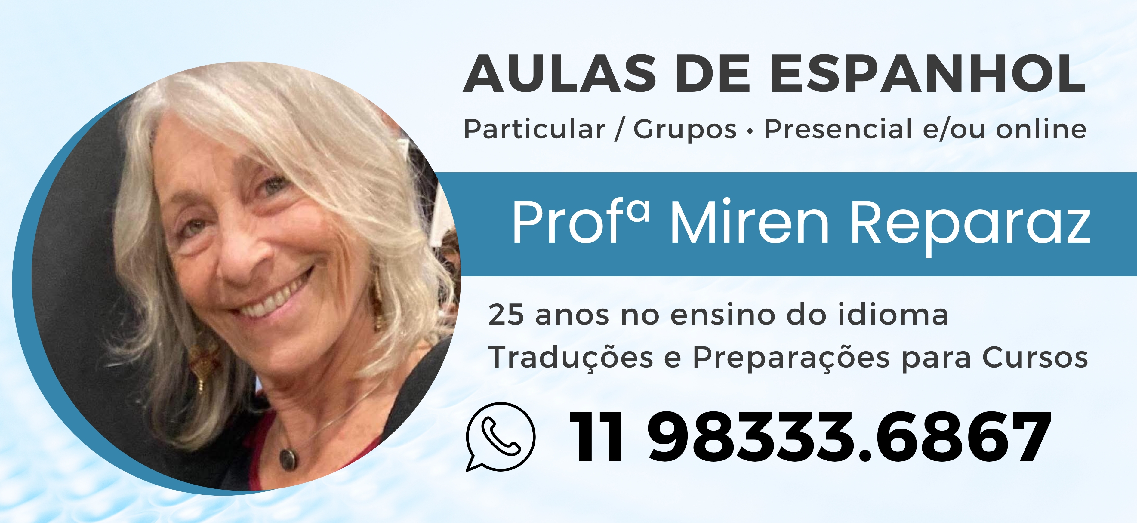A professora Miren Reparaz, nascida em Montevidéu (Uruguai), atua há mais de 25 anos no ensino de espanhol para crianças, adolescentes e adultos. Formada pelo Instituto Cervantes e pela Faculdade Unibero, oferece aulas particulares ou em grupo, presenciais na Granja Viana ou também online.