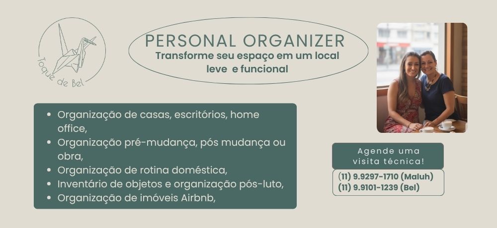 A Toque de Bel transforma sua casa em um espaço leve, funcional e acolhedor com organização inteligente e personalizada. Cuidamos de cada detalhe para facilitar sua rotina e trazer bem-estar. Após mudanças, reformas ou para reorganizar, cuidamos do seu espaço com carinho e técnica. Agende uma visita técnica sem compromisso!
