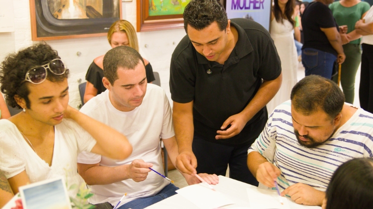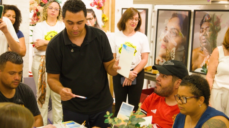 A atividade teve como objetivo incentivar a socialização, o fortalecimento de vínculos e a expressão de sentimentos por meio da arte. Além da prática artística, os participantes também participaram de um momento de escuta e troca, compartilhando experiências e emoções em um ambiente acolhedor.