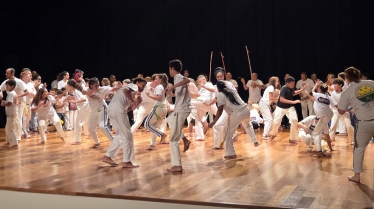 O encerramento foi marcado por um grande momento coletivo: uma das maiores rodas de capoeira já realizadas na região, conduzida pelo mestre Jaguara, um dos homenageados da noite, reunindo artistas e público em uma celebração da cultura popular.