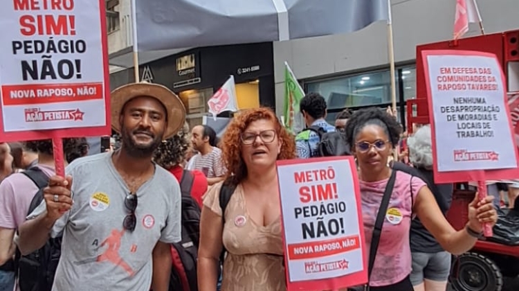 Do lado de fora da B3, isolados do acesso por uma grade metálica colocada pela Polícia Militar, integrantes do movimento ‘Nova Raposo, Não!’, protestaram contra a falta de uma maior discussão do projeto que, segundo eles, tem grande potencial para causar degradação ambiental. Houve protestos também contra os pedágios e a falta de prioridade ao transporte coletivo no trecho urbano da Raposo.