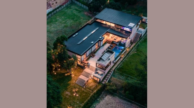 A mansão fica localizada em um condomínio em São Paulo com heliponto e haras. O terreno total tem 2.400m², sendo 1.180m² de área construída.