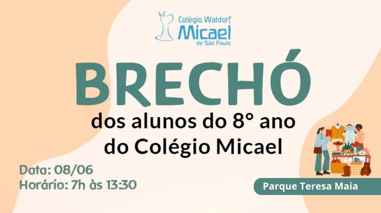 Das 7h30 às 13h30, as famílias do 8º ano do Colégio Waldorf Micael realizam um grande brechó no parque! Roupas, brinquedos, calçados e utensílios em ótimo estado estarão à venda com preços acessíveis — uma opção sustentável e cheia de propósito.